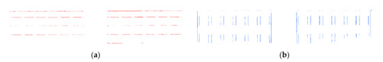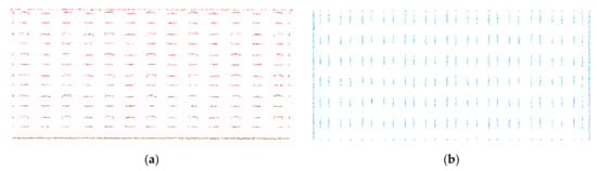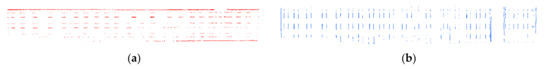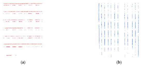 The classification result of Data 4 [28] (the original data was obtained from the public data set of the “IQmulus & TerraMobilita Contest”): (a) The horizontal feature boundaries’ extraction results of Data 4 [28]; (b) The vertical feature boundaries’ extraction results of Data 4 [28].