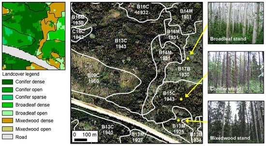 A forest inventory (FI) provides information on the spatial distribution, composition, and structure of forest stands within a forested area [1,2]. Provincial and territorial FIs in Canada are based on photo interpretation of digital aerial photographs at a nominal scale of 1:20,000, which results in a map comprised of polygons ranging in size from a few to thousands of hectares [3]. Since the 2000s, these maps have been produced in a softcopy environment that enables the interpreter to visualize the imagery in a digital stereo-viewing (3D) system, digitize stand boundaries on-screen, and add attributes such as tree species composition, stand height, and crown closure to each delineated polygon and store them as a geographic information system (GIS) layer [4].