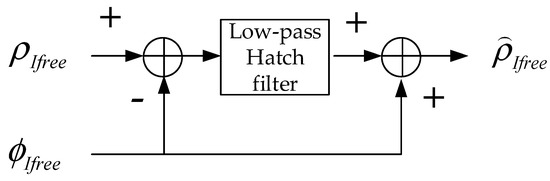 where ρ is the range measurement. ϕ is the carrier-phase measurement. is calculated as . A low-pass filter is employed to attenuate the high-frequency noise in the input measurements. The filtered output is given by