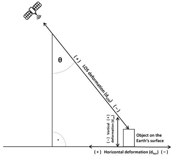 The LOS deformation dLOS is the result of PSI processing, and since the incidence angle is known, horizontal deformations can be extracted using
