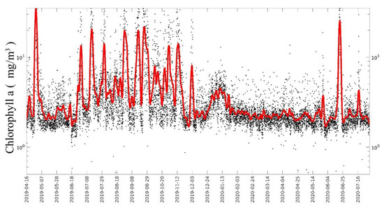 A real time water quality buoy (GD3810; 3 m diameter) operated by Chaozhou Natural Resources Bureau, Guangdong, China, is maintained in Qingyu, Chaozhou, Guangdong, China (23°32.20′ N,117°3.70′ E, see Figure 1). At this location, the water depth is about 10 m. A buoy (FZS5-1) equipped with a YSI EXO2 water quality sonde which fitted with a fluorometric probe was deployed between 16 April 2019 and 31 July and Chl a was measured using a fluorometer.