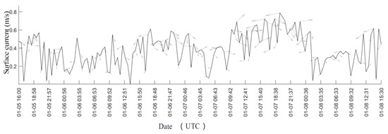 The surface current velocity (m·s−1) at station S1 during 6–8 January 2020.