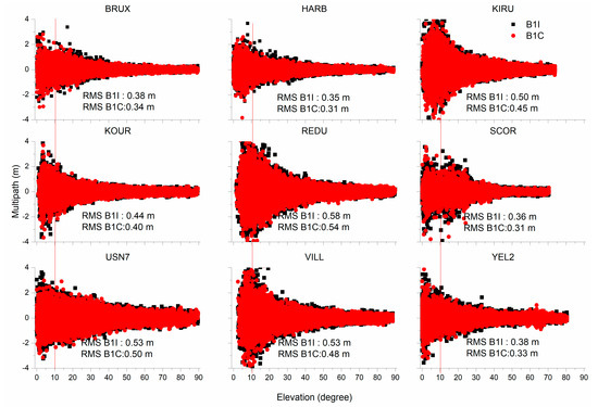 4.1. The Multipath Error Analysis of B1C and B1I Observations