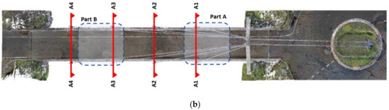 Employing the profiling method described by Mohammadi et al. [39], the relevant geometric accuracy of the generated point cloud was evaluated and compared for several parameters (lengths) shown in Figure 8 with the collected as-is measurements and available as-designed drawings. Using this method, the lengths/distances were calculated after converting four cross-sections of the bridge point cloud, shown in Figure 7b, into polygon meshes (triangular mesh models) and conducting distance measurement using GOM Inspect computer software [68]. The results of this evaluation over the proposed cross-sectional profiles of the bridge are presented in Table 3 and Table 4.