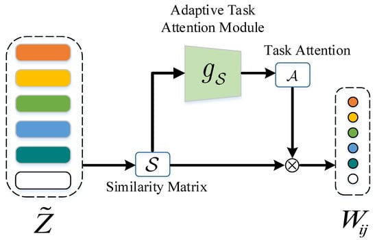 For node i, the corresponding attention value between the target embedding feature and features of all other samples in the task can be yielded by applying a common method in the attention mechanism. The corresponding attention value is acquired by the adaptive task attention module, which can be formulated as: