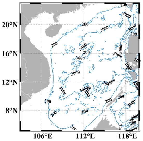 Study area—the SCS, with the Sulu Sea and shallower sea excluded.