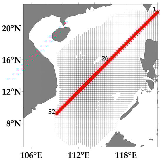 Here, to further illustrate the effectiveness of the fusion model in forecasting the trends of ocean variables, we show the time-station map for SLA and SST. The red dots in Figure 12 represent the locations of the sampling sites—a total of 52 sampling points, extending from northeast to southwest in the SCS—as shown in this figure.