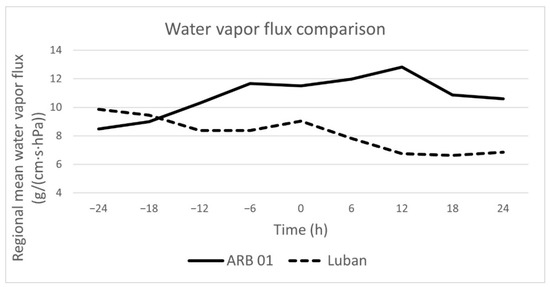 Figure 5 shows the WVF distribution of ARB 01 and Luban at 850 hPa during and after making landfall. WVF represents the water vapor source for TC precipitation. The water vapor sources of the two TCs are both from the sea surface and continuous water vapor transport from the southern Indian Ocean. Compared with Luban, ARB 01 has a tendency to carry more water vapor inland and has a stronger ability to transport water vapor from the sea after landfall. Figure 6 shows the variation of regional average water vapor flux of the two TCs with time series. Since 18 h before the TC’s landing, the water vapor transported by ARB 01 had already exceeded Luban. After the TC’s landing, the amount of water vapor transported between ARB 01 and Luban was further expanded, providing more water vapor and more sustained water vapor support for ARB 01’s precipitation. More water vapor supports the regional average precipitation of ARB 01.