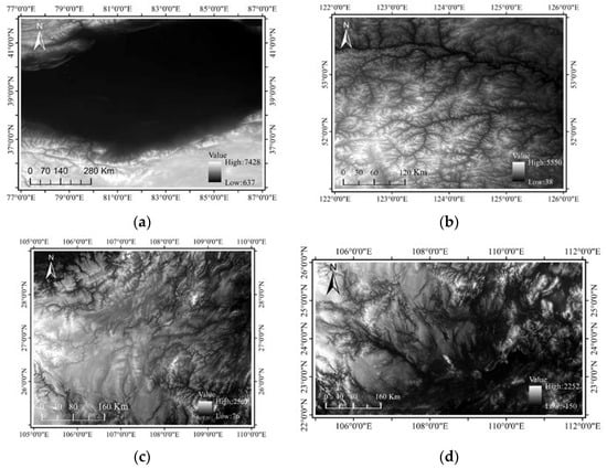 - Hirt, C. Artefact detection in global digital elevation models (DEMs): The Maximum Slope Approach and its application for complete screening of the SRTM v4. 1 and MERIT DEMs. Remote Sens. Environ. 2018, 207, 27–41. [Google Scholar] [CrossRef] [Green Version]