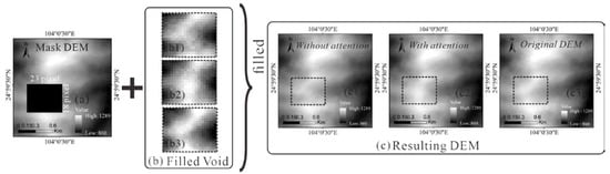 - Zhang, C.; Shi, S.; Ge, Y.; Liu, H.; Cui, W. DEM Void Filling Based on Context Attention Generation Model. ISPRS Int. J. Geo-Inf. 2020, 9, 734. [Google Scholar] [CrossRef]