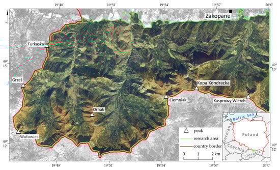Research area of the Western Tatras. Source: RGB orthophoto (acquired in September 2019), courtesy of the Tatra National Park.