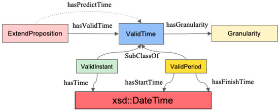 First-order logic (FOL) is a formal system used in mathematics, philosophy, linguistics, and computer science. Specifically, hierarchical relationships and object attribute relationships can be described as first-order predicate logic, as shown in Figure 6. The common ontology, time ontology, and space ontology of disaster prediction are formally modeled with OWL language. The hierarchical relationship and attribute relationship implies a series of first-order logical reasoning.