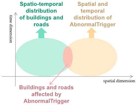 Schematic diagram of the spatio-temporal intersection of anomalous events and geographic entities.
