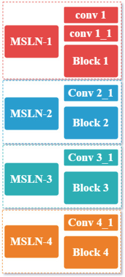 In order to make the MSLN more convenient and minimize the conflicts when splicing channels as much as possible, the number of convolution kernels in the block was set to 16, 32, 64, and 128, respectively. Compared with the number of channels in the ResNet (64, 128, 256, 512), the total size of parameters in the ResNet (130.20 ± 0.65 MB) was substantially decreased (10.87 ± 0.27 MB) and were greatly improved regarding the convergence speed.