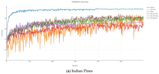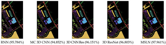 Although many current deep learning network structures have already achieved satisfactory classification results, it remains very difficult for them to achieve perfect classification results in the face of issues such as the curse of dimensionality, image noise, too few labeled samples, and “the same object with distinct spectra, and distinct objects with the same spectrum” [42,43,44].