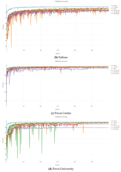 - Seydgar, M.; Alizadeh Naeini, A.; Zhang, M.; Li, W.; Satari, M. 3-D convolution-recurrent networks for spectral-spatial clas-sification of hyperspectral images. Remote Sens. 2019, 11, 883. [Google Scholar] [CrossRef] [Green Version]