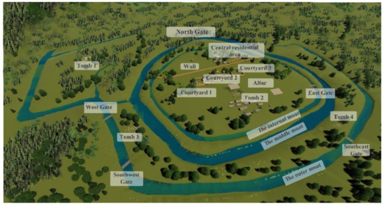 - Liu, J.; Zou, Q.; Hu, Q.; Zhang, C. A Settlement Landscape Reconstruction Approach Using GIS Analysis with Integrated Terrain Data of Land and Water: A Case Study of the Panlongcheng Site in the Shang Dynasty (Wuhan, China). Remote Sens. 2021, 13, 5087. [Google Scholar] [CrossRef]