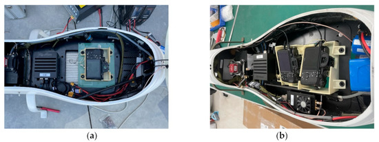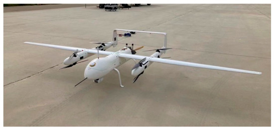 A strong endurance capability is essential for an UAV that conducts wide-area object searches. In addition, the UAV also needs to have an interface to communicate with the object search system. In order to meet these requirements, it is more suitable to use a small- or medium-sized industrial UAV of more than 25 kg, with a certain degree of carrying capacity. We used a 50 kg vertical take-off and landing (VTOL) hybrid UAV with a flying speed of 120 km/h as the carrying platform. Figure 7 shows the appearance of this UAV. The VTOL UAV uses batteries for vertical take-off and landing, and a gasoline engine provides the cruising power. This type of design significantly reduces the demand for take-off and landing sites while ensuring long-term cruises.