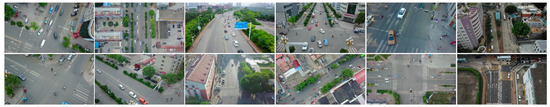 When performing tasks that require UAV to search for objects in a wide area, two main issues of “area scanning efficiency” and “real-time detection” need to be considered. In terms of area scanning efficiency, an effective and easy-to-implement method is to use the UAV equipped with high-resolution cameras to take images of the ground surface at mid-to-high altitude. Figure 2 displays the characteristics of the images collected in this way. As shown in the figure, the aerial images collected at mid-to-high altitude have the characteristics of a large field of view and small objects. When the UAV’s flight altitude relative to the ground is 900 m, and the camera is 42.4 megapixels (7952 × 5304 pixels), while the ground vehicle in the image only accounts for 0.0075% (about 80 × 40 pixels) of all of the pixels in the entire image. Since the cameras are just mounted on the UAV, the image data can only be taken out after the UAV has landed and then processed and filtered through the object detection algorithm. Undoubtedly this method takes much post-processing time and costs more to perform. In some time-sensitive task situations, it may also lead to missing the best time for the object search.