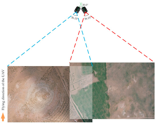 (a) Install a single camera with the angle of view facing directly below the UAV; (b) Install dual cameras, and the cameras deviate from the UAV by 15° to the left or right, respectively.