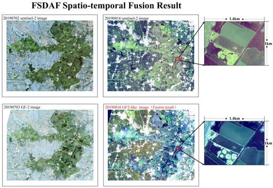 Spatio-temporal fusion result for 16 August 2019 (region I, see Figure 1).