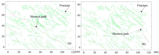 where f is the fracture frequency. li represents the trace length of the ith fracture on the shortest path. k indicates the number of fractures searched on the shortest path. L expresses the length of the shortest path.