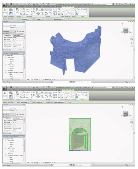 In this specific case, we are dealing with the HBIM implementation of a historical building; as highlighted above, all of the issues raised in the preceding paragraphs (actual modeling difficulties, irregular sections of the walls with unknown stratigraphists and architectural details) are present [13,14].