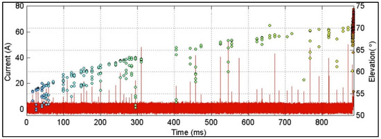 - Sun, Z.L.; Qie, X.S.; Jiang, R.B.; Liu, M.Y.; Wu, X.K.; Wang, Z.C.; Lu, G.P.; Zhang, H.B. Characteristics of a rocket-triggered lightning flash with large stroke number and the associated leader propagation. J. Geophys. Res. Atmos. 2014, 119, 13388–13399. [Google Scholar] [CrossRef]