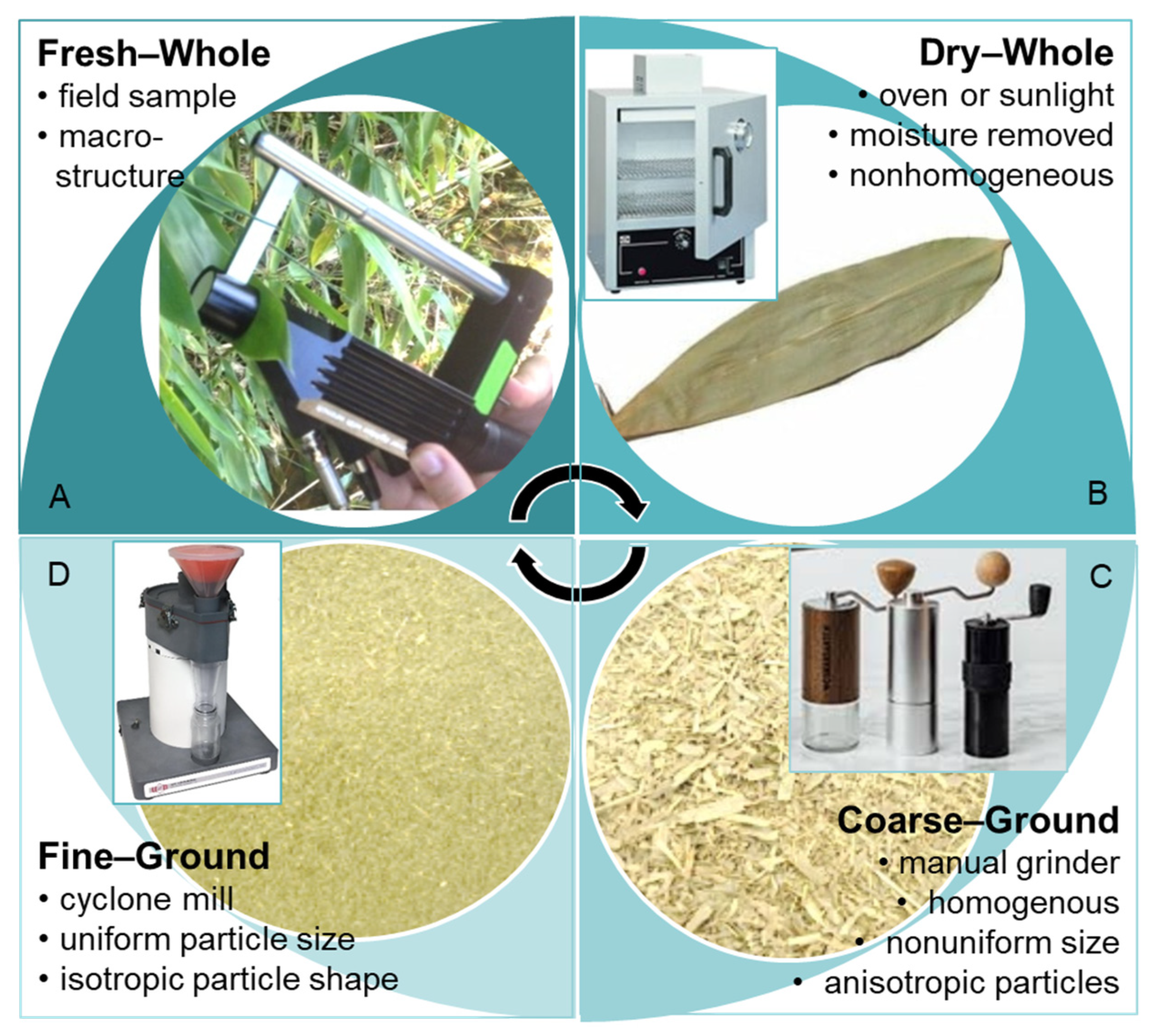 - Alomar, D.; Fuchslocher, R.; De Pablo, M. Effect of preparation method on composition and NIR spectra of forage samples. Anim. Feed Sci. Technol. 2003, 107, 191–200. [Google Scholar] [CrossRef]