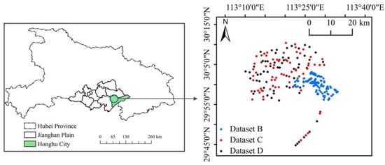 Study area showing the sampling points of Dataset B, Dataset C, and Dataset D.