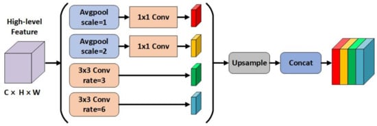 - Zhao, H.; Shi, J.; Qi, X.; Wang, X.; Jia, J. Pyramid scene parsing network. In Proceedings of the IEEE Conference on Computer Vision and Pattern Recognition, Honolulu, HI, USA, 21–26 July 2017; pp. 2881–2890. [Google Scholar]