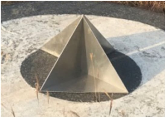 The airborne InSAR system was employed to obtain 4 scenes of single look complex (SLC) data (two strips) from west to east in the Heyang experimental area with 22 ground control points (GCPs, corner reflector, as shown in Figure 2) arranged at the beginning and end of the test area, including 9 GCPs for block adjustment and 13 GCPs for DSM verification. Twenty-one scenes of SLC data (three strips) were obtained from west to east in the Shibing experimental area with 26 GCPs, including 14 GCPs for block adjustment and 12 GCPs for DSM verification. There were 13 scenes of SLC data (one strip) obtained from southwest to northeast in the Qionglai experimental area with 25 GCPs, including 12 GCPs for block adjustment and 13 GCPs for DSM verification.