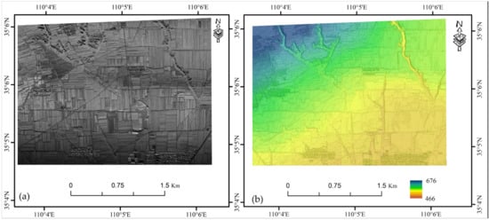 The obtained DOM (a) and DSM (b) of the Heyang experimental area.