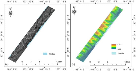 The obtained DOM (a) and DSM (b) of the Qionglai experimental area.