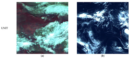 The daily data from January to December 2020 were used for the training process, and the daily data from June to August 2020 were used for testing. The daily data are sampled from 12:00 in the satellite’s time zone, to maximize the visible area in the image.