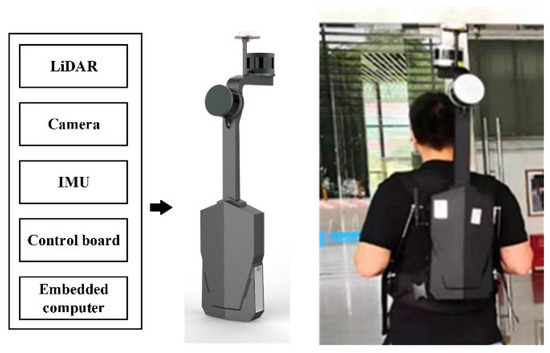For large-scale 3D mapping applications in GNSS-denied environments, we develop a multisensor 3D MLS backpack mapping system (Figure 5). The system can collect high-precision time-synchronized IMU-LiDAR measurements. The system includes a KVH DSP-1750 fiber optic IMU and a Velodyne VLP-16 multiline LiDAR, and the sensors are integrated using an acquisition board to ensure time synchronization. The KVH DSP-1750 IMU is composed of three fiber optic gyroscopes and three MEMS accelerometers, and its sampling frequency is 250 Hz, so it can effectively capture the high-frequency motion of the carrier platform. The VLP-16 LiDAR scans the surrounding 360° environment at a frequency of approximately 10 Hz. In this paper, the point cloud obtained by a complete 360° scan is called a scan frame.