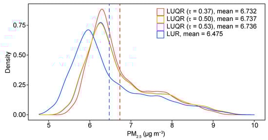 Density distributions of PM concentrations predicted using LUQR and LUR models.