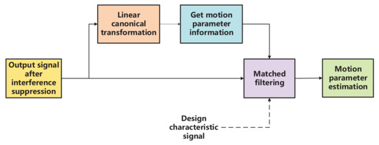 Since the LCT can achieve effective separation of signal and noise by reducing the influence of noise on matched filtering, the LCT process is performed on the matched filtering. The target parameter estimation system diagram based on MF+LCT is shown in Figure 11.