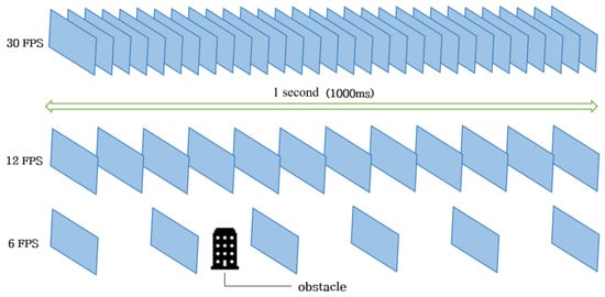 Drones with rotary blades often fly at speeds of 10–30 m/s; however, if the frame rate drops due to a long duration, they will fly in a blackout situation and collide with obstacles. As a result, the speed with which drones detect objects in real-time is critical. As shown in Figure 1, the higher the Frames Per Second (FPS), the more images are processed and displayed. It is necessary to go through a preprocessing step when processing an image so that the CC can quickly perform an object recognition process with the images.
