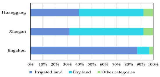 where is the extracted cotton cultivated area and and are the actual cotton cultivated area. The data used for calculating the area error was the 2020 dataset for Jingzhou, Xiaogan, and Huanggang obtained from official government statistics (http://tjj.hubei.gov.cn/tjsj/, accessed on 20 October 2021).