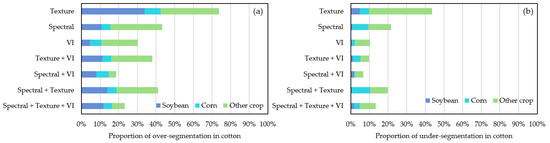 Proportion of over and under-segmentation of cotton in Jingzhou: (a) Proportion of over-segmentation in cotton; and (b) proportion of under-segmentation in cotton.