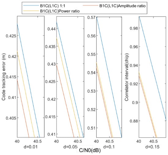 Combined with Equations (11), (35) and (36), the mathematical model of the joint code tracking accuracy for the B1C and the L1C signals is derived as follows: