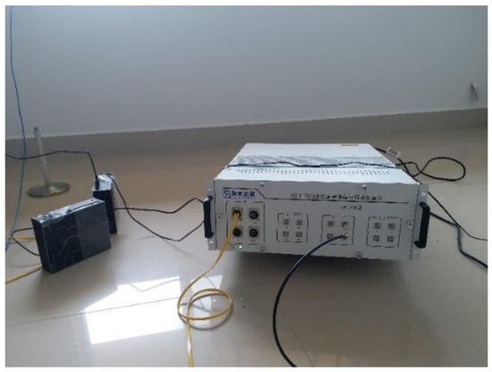 We used static test equipment with a sampling rate of 250 MHz and an intermediate frequency of 62.5MHz. A small atomic clock was adopted by the GNSS signal collector, as shown in Figure 9, which was placed in the open area on the roof to collect signals in Luo nan, Shaanxi. This is a dual-channel acquisition card developed by VI SERVICE NETWORK. Figure 10 shows the sky plot distribution of observable satellites during the test. In the positioning module, static single-point positioning was used to verify the improved result of combined positioning. The real-life satellite data that were collected were 60s long, and the first 55 s were used in this experiment.