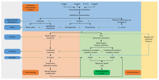 In this part, to locate the targets more precisely based on the prescreening results, we would first provide finer features than scalar variables for each grid. Back to Section 3.2, when we first got the histograms of intensity, GLCM texture and wavelet low frequency components as statistical characteristics, instead of deriving scalar indexes from them, we would use them as vectors directly to explore the variation patterns among different aspects.