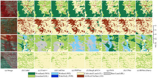 - Compared with other mainstream semantic segmentation networks, our proposed BSNet achieves state-of-the-art performance on our self-made large-scale Landsat dataset.