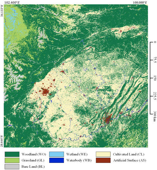 The more difficult to label category is wetland, which looks between grassland and water body. We label those three categories according to the following criteria: (1) areas that are chronically water throughout the year are labeled as waterbody; (2) if there is water for more than two months of the year and there is also vegetation, it is labeled as wetland; (3) those with no water present, or with both water and vegetation appearing in less than two months, are labeled as grassland. According to this rule, we used multi-temporal high-resolution satellite images to help judgment and field investigations in some disputed areas. The textures of other categories are quite different and can be easily interpreted visually.