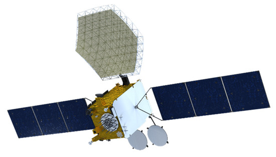 Figure 1. BeiDou-3 IGSOs unfolding on-orbit (http://www.csno-tarc.cn/en/system/introduction (accessed on 15 November 2021)).