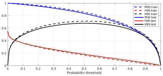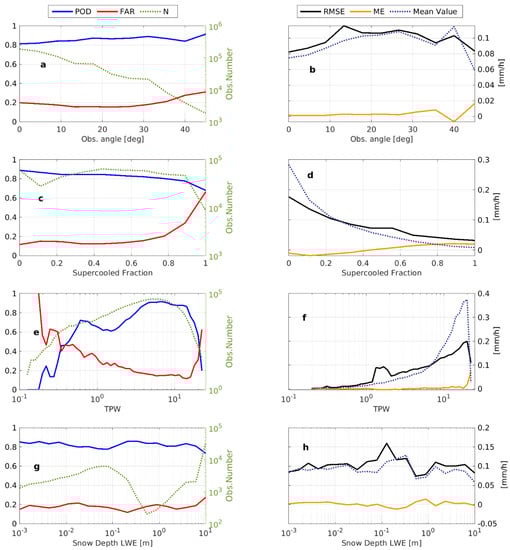 Table 5 shows a similar intercomparison between various models for snowfall detection in terms of the Heidke skill score (HSS), critical success index (CSI), probability of detection (POD), and false alarm ratio (FAR), defined as: