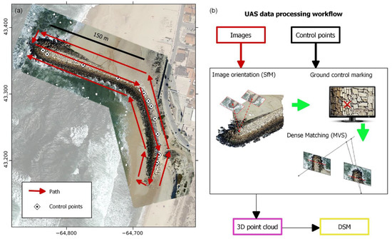 - Henriques, M.J.; Fonseca, A.; Roque, D.; Lima, J.N.; Marnoto, J. Assessing the Quality of an UAV-based Orthomosaic and Surface Model of a Breakwater. 2014, pp. 1–16. Available online: https://mycoordinates.org/assessing-the-quality-of-an-uav-based-orthomosaic-and-surface-model-of-a-breakwater/ (accessed on 14 February 2022).