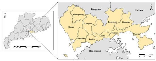 Shenzhen is on the east coast of the Pearl River estuary in Guangdong Province, China. Its total area is 1997.47 km2. As of the end of 2019, Shenzhen had a residential population of approximately 13.4388 million and a total GDP of 2.69 trillion yuan. Shenzhen is one of the economic, financial, technological innovation, and logistics centers in China. Since the reform and opening policy, Shenzhen has experienced economic development. The massive gathering of population has intensified urban expansion, leading to a constant shortage of land resources. Medium-rise and high-rise buildings have become more and more dense. The spatial structure becomes more complex. Therefore, Shenzhen city is suitable as the study area of this study.